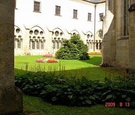 Domus autem Gothicae non ante annum 1240 ad dispositionem fuerunt, nec aula capitularis nec quaestuum aedificia nec refectorium nec dormitorium nec ambitus in meridie fani situs. Genere Gothico adveniente chorus Romanicus demolitus est quamvis caducus omnino non esset. Chorum novum una cum claustri lavatorio anno 1295 consecraverunt.